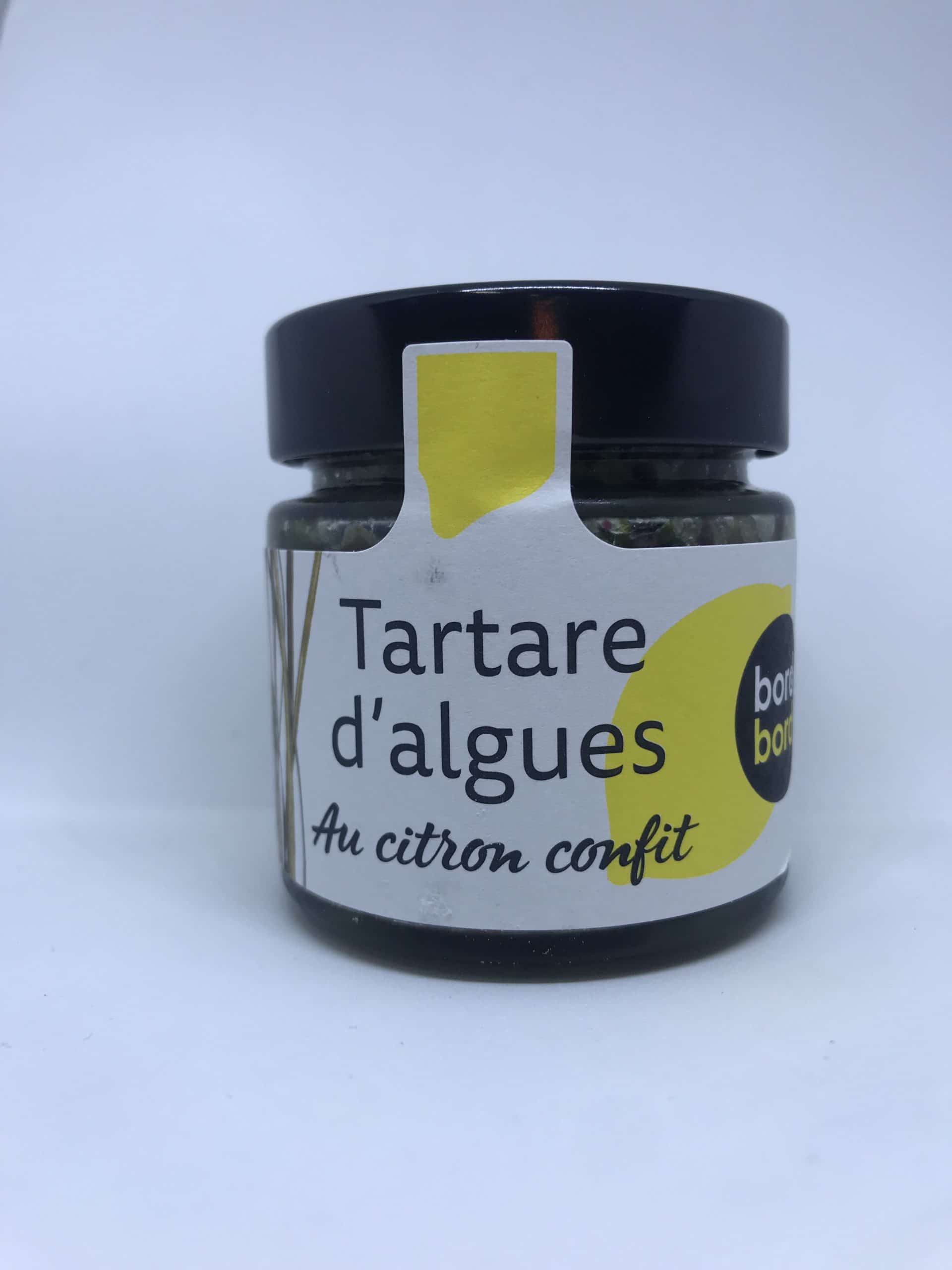 Algues* 50 % (spaghetti de mer, wakamé, laitue de mer**, dulse, origine Bretagne ou **Portugal), huile d’olive vierge extra*, citron confit* 11 %, vinaigre de cidre*, oignon jaune*, sel.
